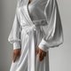 - 这款长款真丝新娘礼服,拥有精致的袖口和奢华的垂坠感,展现隽永优雅的气质。无论是婚礼早晨、新娘写真拍摄,还是作为送给新娘的精美礼物,都是您的理想之选。采用柔软飘逸的真丝精制而成,打造轻松优雅的造型。