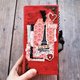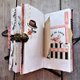 Paris journal contains: tea dyed paper, archival papers, lace, charms, fabric cover. Hardcover but with fabric on it.
