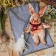 兔子和信封都用油漆着色。信封上的符号和铭文是用墨水在织物上创作的,因此可以清洗信封。