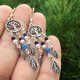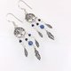 羽毛流苏上搭配的天然宝石分别是青金石(深蓝)、珍珠、蓝晶石(亮蓝),改夹式的照片在最后,也可以改弹性耳圈。