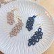 手工粉白勾耳叶子型耳环,以传统蕾丝编织手工艺制作的时尚首饰