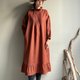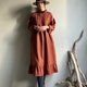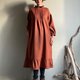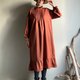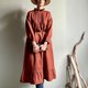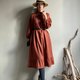 加尼叶之夜/风琴折荷叶领荷叶下摆古典砖红色长袖洋装/法国毛料