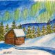 《北极光》14x18 厘米,2021 年 纸、水彩颜料、中性笔 (需要一个框架挂在墙上) 艺术家 - 阿纳斯塔西娅·库尔干诺娃 环保运输包装(回收材料)