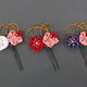 I made it with three colors of white, red, purple, with a motif of classic lovely plum blossoms, combined with a retro squeezing (squirrel) pattern. We use silk crepe fabric with fluffy and gentleness texture and we make it with round knob technique. It is a small yet gorgeous atmosphere because it gave water decoration of gold. Since it is U pin, you can easily transform into an outdoor style simply by plugging it into the hair you uploaded ♬ I think that it is pretty to decorate a little at the ear of the descended hair ☆