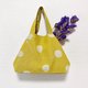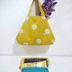 选用日本进口印花棉布,里布搭配几何图形或素面棉布,做成简单小巧手提两用托特包,袋口两边附加羊毛毡球蜡绳,内装物较少时可以打结缩小袋口宽度,东西较多时可使用托特包造型,袋口中央并有磁性铁扣,避免内装物品掉出,充满设计巧思!虽然是手提型的托特包,但平常外出时简单小物都可装入,棉布包轻巧好用,也可避免塞入太多物品造成包包太重而导致腰酸背痛的情形!