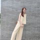 - Sleeveless top + Long pants Cotton-linen top with back details and smocked back cozy pants.