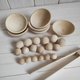 - Wooden set for the development of fine motor skills of hands. The toy is handmade from naturally solid wood. The set includes: bowls (9 cm) - 6 pieces ball (3 cm) - 6 pieces ball (2.5 cm) - 6 pieces ball (2 cm) - 6 pieces tweezers (20 cm - 2 cm) - 1 pc The toy is not coated with varnish and paint. ! Please note that this toy has small parts that can be dang