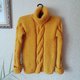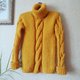 厚实的麻花编织毛衣,圆领,男士黄色款,采用柔软蓬松的马海毛纱线编织而成。