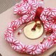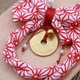 周围以日本传统缩缅布制成的红色蝴蝶结点缀。红色在日本文化中象征驱邪、爱情与生命力。红底配上白色纹样,设计华丽又雅致,让人心情愉悦,也展现浓厚的和风之美。
