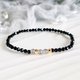 黑灰配色的水晶手链很有时尚气息,简约地配以特色包金珠点缀,加添一份精致感。纤细的设计很好配搭造型,无论单独佩戴,还是和手表或其他手链一起佩带也很适合喔!