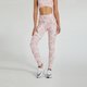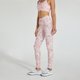 - 100%环保可再生面料RPET,粉色抽象蝴蝶翅膀印花,中高腰收腹提臀紧身裤设计。