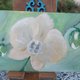 兰花被涂成柔和的白色和奶油色,在凉爽的绿色背景下显得格外引人注目。艺术家宽松的笔触营造出一种运动感和质感,赋予花朵一种梦幻般、近乎超现实的品质。