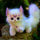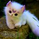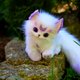 迷人的紫色眼睛、形状奇特的耳朵、透明的翅膀和美丽的月亮装饰着小猫的额头。