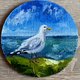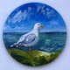 以海洋为主题的圆形油画 |手绘海洋艺术品 |航海家居装饰 |微型绘画