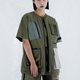 - 拼上不同色阶、不同材质的绿,搭配各种型态的口袋, 像是拉链贴袋口袋、翻盖式口袋以及立体大口袋, 而左下的两个隔层立体袋更延伸至衣服后侧, 大容积的设计增添更多便利性。
