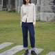 高腰直筒的阔腿裤型