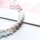 梦幻渐变粉蓝白色(渐变色线,颜色安排位置每条作品均略有差异)/白色珍珠面珠子/银色纲珠
