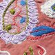▲喀什米尔靠近喜马拉雅山,为了对抗特殊的酷寒气候,水煮羊毛是喀什米尔利用当地自然环境发展出来的一种细致的工艺, 当地海拔高,水的沸点低,早晨在太阳上升时,将羊毛制品,放入融化的高原雪水中浸泡,之后加热沸煮。到了傍晚太阳下山时,再把羊毛制品在月光下晒,经由繁复工续后的产品, 不但可以清除掉一些杂质,羊毛产生收缩,纤维之间更加地紧密,最后经由妇女手工编织及刺绣,呈现一件件颜色及绣法独特的织品