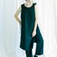 - 这是一条无袖假两件连衣裤,裤子两侧做工字折,为萝卜剪裁,版型显瘦。