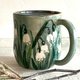 雪片莲刻画手工咖啡杯_陶器马克杯
