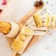 1.面包组合:法国面包、菠萝面包、大理石纹面包、三明治、木质托盘、小碟子