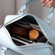 除了手持之外,还附赠一条肩带,可以多种方式悬挂。稍长的提手可手握或穿过手臂,肩带可斜挂或斜挂。是一款迷你波士顿包,可以根据当时的心情和时尚来使用。