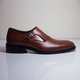 与系带方式不同,孟克鞋 (Monk) 最大的特点在于鞋面上会有一块包复住鞋腰 (Quarter),并使用扣环将其固定在鞋子侧边的大面积皮革。皮革的扣环采类似皮带的设计,使用孔洞调整脚背处的松紧度,使整体容量释出更多空间,穿着上也较舒适。