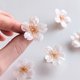 在精致的樱花花瓣上手工涂上多层树脂,保留自然鲜花立体形状的同时,也使脆弱的鲜花实现稳固性。