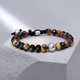 这款男士手链的设计灵感来自对未来太空的幻想,被称为 "猛虎之眼"的多色虎眼石与外星图案造型相结合,打造代表神秘外星文明的手链。诠释对于太空的探索与外星文明的幻想,开拓人类的想像力和更多可能。