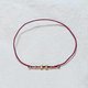 蜡线编织绕旋纹配合上黄铜珠,加上没有任何多余扣环的极简设计,线材与黄铜珠不怕水、细致坚固不易断裂,可以一直配戴在身上不用拿上拿下,不会鈎破衣服,更可多样性搭配其他首饰。
