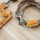 根据使用要求可以自由选择搭配挂包短绳(牛皮绳)或挂脖长绳(伞绳)。挂绳都有配可伸缩配件,使用起来更加顺手。