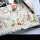 先完成制作书套, 在剪相关性旅游的图案与文字徽章等