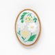 This natural, wooden brooch features embroidery of small flowers blooming on the lake bank.