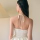 这款绑脖上衣为均码设计,胸围可弹性延展至 36 寸,背部采松紧设计。