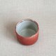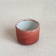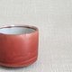 此作品选用细致的信乐烧陶土,以辘辘精心制作成小杯,再施以赤绘纹饰并经多次烧制而成。赤绘的笔触刻意不求均匀,以展现手作的温润质感。杯内则施以白色釉药,并绘上红色线条,让盛装其中的饮品更显鲜明。杯缘呈花形,触感滑顺,入口温和。