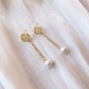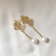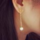 复古感镂空窗花点缀小小的水滴钻,最初设计“不对称长度”的珍珠耳环,
