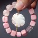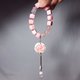严选灵性有机宝石女皇贝,瓷化程度高,巧雕华美富丽玫瑰、魔方珠饰,相佐星光粉晶金刚杵(智慧)、苹果(平安)、及冰种菱锰矿(红纹石)珠,宝石水光洁净、色泽丰润,整体呈现净白、嫩肤、嫣粉等自然渐层色彩,古典风情与现代时尚兼备,优雅气质立现。