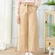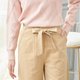宽裤版型适中,修饰腿型十分显瘦,腰部后半圈松紧带设计,穿着舒适便利,蝴蝶结绑带装饰增加层次立体感,左右大口袋实穿性满分,款式简约大方,气质甜美。