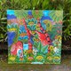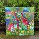 传奇艺术家David Mzuguno创了这个辨识度很高的画风,以植物为主角,画面充满鲜艳欲滴的丰硕感。本幅作品为老四Kipara Mzuguno所创作。