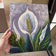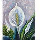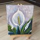 - 手绘原创白色和平百合画。花卉原创艺术。色彩缤纷的原创艺术品。花卉印象派绘画 - 绘制在尺寸为 10x12 英寸的面板上。花画的侧面正面有艺术家的签名。