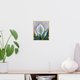 。这幅艺术品尺寸为 12x10 英寸,描绘了一朵宁静的白色和平百合,花序为黄色,周围环绕着茂盛的绿叶。柔和、柔和的背景为作品增添了平静的感觉。