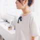 夏日总不能缺少白色简约上衣,领位的蓝色棉绳子令衣服减低了单调感,轻轻点缀又不会过分抢眼啊!