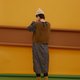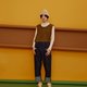 搭配的裤子为 假反折低裆窄管牛仔裤