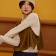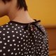 - 内搭是一件方点黑底的圆领直筒长袖洋装,本身因为做为内搭没有口袋,若是想要加购做口袋也可以,领子是滚边后绑带式的设计好穿脱,背心是一件脇边开口比较大短版的针织背心,不论是搭配本身的内搭洋装或是搭配其他裤装,都会十分好看。