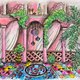 小花园水彩画,摩洛哥阿拉伯风格艺术品,旅游绘画