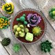 作品包括:田园蜡烛1个 (盛放4-5款多肉植物)