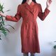 复古 1980 年代棕色豌豆大衣连衣裙,双排扣泡泡袖连衣裙,长袖连衣裙,豌豆大衣连衣裙款式