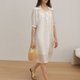 - 宽松的版型 包容性很好 尖领的造型 带了点儿时髦 抽绳设计 可以自由调整领部宽松度 纽扣采用天然白色贝壳扣 营造清新的自然感 100%天丝面料 手感细腻温柔有垂感 竖条纹的纹理 和泡泡袖的遮肉设计 搭配了一条内搭吊带裙