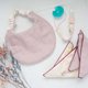 四件组弥月礼盒:内容包含大肠围兜X1、八重纱手帕X2、奶嘴夹X1。