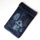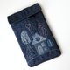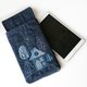 - 手工缝制的平板电脑或 Kindle 保护套,采用牛仔布制成,并带有贴花。